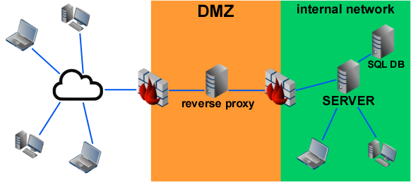 Как вариант решения проблемы можно использовать reverse-proxy в "демилитаризованной зоне" (ДМЗ).