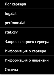 Админ-функции (сервер)Предоставляют следующие возможности:![]() - "Лог сервера" Запрос лога работы сервера в текстовом виде - "log.dat" Запрос лога работы сервера в бинарном виде (для передачи в техподдержку) - "perfmon.dat" Запрос лога производительности сервера в бинарном виде (для передачи в техподдержку) - "stat.csv" Запрос лога статистики сервера в табличном виде (для передачи в техподдержку) - "Запрос настроек сервера" Запрос текущих настроек сервера (для передачи в техподдержку) - "Информация о сервере" Различная информация о текущем статусе сервера и серверной машины - "Информация о лицензии" Информация о текущей установленной лицензии (кол-во и дата истечения срока) |