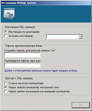 Первым запрашиваемым параметром в ходе установки является инстанция SQL-сервера.