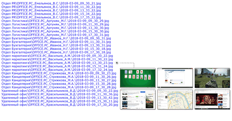 Снимки отсортированы по дате и по времени от начальной даты (верх списка) к конечной дате (низ списка). Для просмотра изображения достаточно кликнуть по нему кнопкой мыши. При выборе режима Слайд-шоу имеется возможность настройки временного интервала между сменой изображений. Внимание! Для того, чтобы снимки с экранов можно было увидеть в данном отчете, необходимо чтобы была включена одна из следующих опций: |