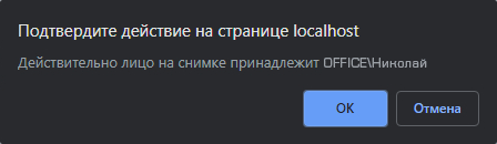 Чтобы система идентифицировала пользователя и внесла в базу данных, необходимо кликнуть на "подтвердить лицо" под фотографией пользователя, по которому строится текущий отчет. Внимание! Подтверждать лица может только пользователь, обладающий соответствующими правами После этого необходимо подтвердить выбор во всплывающем окне.