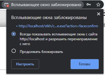В случае, если всплывающее окно блокируется браузером, необходимо дать разрешение на отображение окна.