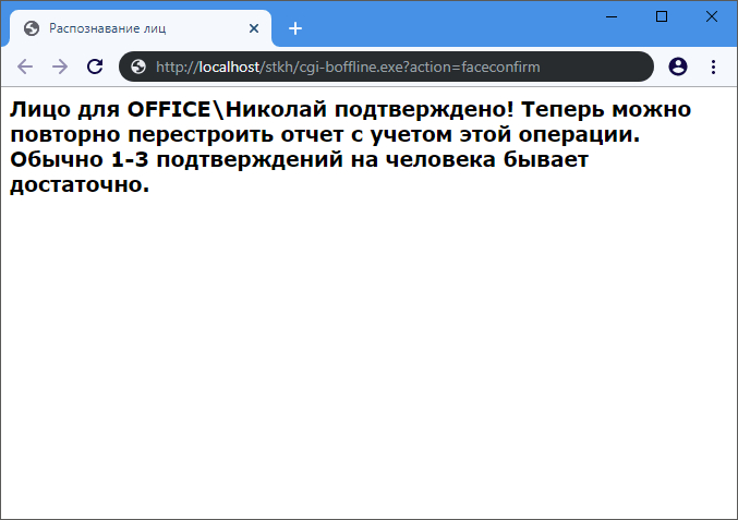 При успешном подтверждении лица, отобразится соответствующая информация.