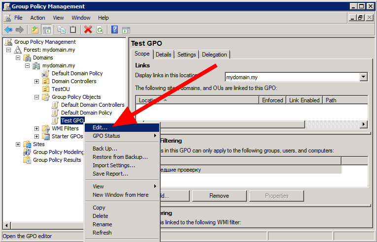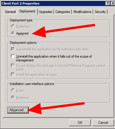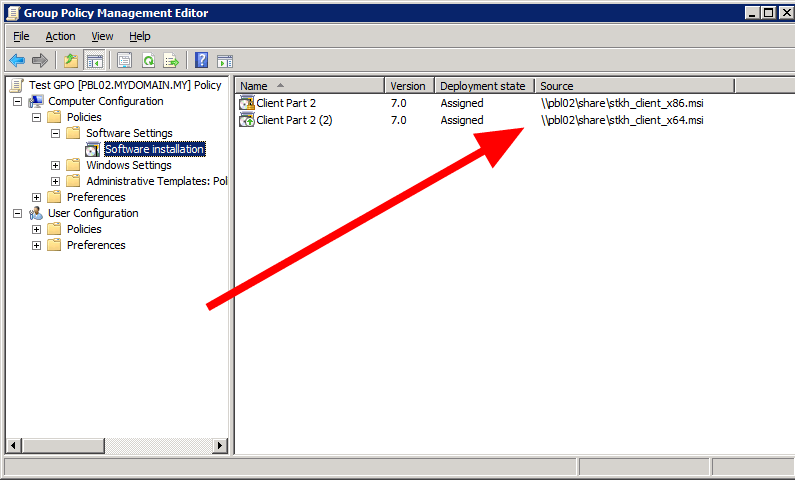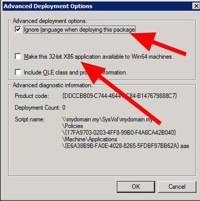 Способ 3. Установка через Active DirectoryС помощью службы Microsoft Active Directory можно произвести автоматическую удаленную установку клиентской части на группу компьютеров. Для выполнения процедуры установки необходимо обладать правами администратора домена, на компьютеры которого необходимо установить клиента. Также необходимо иметь доступный на чтение сетевой ресурс (Shared Folder).Запустите установщик, выбрав режим "Удаленная установка клиента". В мастере удаленной установки перейдите к способу 3. Далее на примере будет показано создание GPO ("Test GPO"), установка в этом объекте msi-пакетов и adm-шаблона, а также линкование этого GPO к OU ("TestOU") с компьютерами, для которых требуется первоначально развернуть клиентов. Создаем новый объект GPO ("Test GPO"): ![]() Редактируем созданный объект: ![]() Для Computer Configuration добавляем msi-пакет: ![]() Выбираем путь к msi (x86) обязательно через сетевой путь. В эту сетевую папку нужно предварительно скопировать msi-пакеты и клиентские машины должны иметь доступ к этому пути: ![]() Выбор типа развертывания: ![]() Запускаем расширенные опции: ![]() Изменяем флаги: ![]() Все тоже самое для x64-пакета: ![]() Добавляем шаблон из прилагаемого adm-файла: ![]() Редактируем добавленный шаблон: ![]() Устанавливаем IP/имя сервера для подключения клиентов: ![]() Линкуем созданный GPO к OU с компьютерами: ![]() ![]() Настройка завершена: ![]() При следующей перезагрузке компьютеров, внесенных в организационную единицу, на них будет установлена и настроена клиентская часть комплекса. Примечание: данный .msi-пакет не содержит информацию про обновления и uninstall, потому удаление и обновление осуществляйте только средствами комплекса, а не ActiveDirectory! Если после перезагрузки ничего не произошло: 1) Попробуйте перезагрузить клиентскую машину еще раз. 2) Попробуйте увеличить время загрузки до 30 сек: ![]() 3) Попробуйте включить опцию: ![]() 4) На клиентской машине выполнить: gpupdate /force См. также "Автоматическое развертывание в среде Active Directory" |